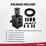 The EVIL ENERGY Oil Catch Can Bundle is a high-performance solution engineered to protect your engine and simplify maintenance, with versatile features suitable for both daily drivers and high-demand vehicles like race cars and off-road vehicles.