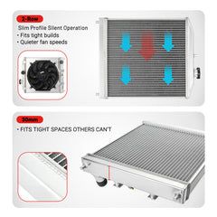A: Compared to stock copper or plastic radiators, this 2-row 30mm aluminium radiator offers lightweight construction, corrosion resistance, and superior cooling efficiency—ideal for daily driving, performance upgrades, or race builds.