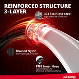 2. Triple-Layer Durability & Performance: This PTFE Fuel Line is built for extreme conditions with a durable triple-layer design: a smooth PTFE core, a middle layer of stainless steel reinforcement, and a rugged nylon exterior for anti-abrasion and heat resistance. This construction allows for: