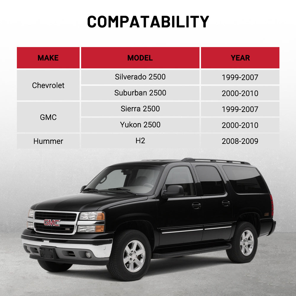 1999-2007 Chevrolet Silverado 2500 2000-2010 Chevrolet Suburban 2500 1999-2007 GMC Sierra 2500 2000-2010 GMC Yukon 2500 2008-2009 Hummer H2 |
