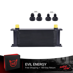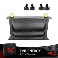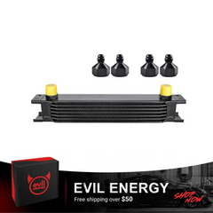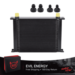 The EVIL ENERGY Stacked Plate Oil Cooler is engineered to enhance lubrication efficiency and protect critical vehicle components by maintaining optimal oil temperatures. Its advanced stacked plate design delivers superior cooling performance, making it suitable for engines, transmissions, and rear differentials in most vehicles—from daily drivers to performance builds.