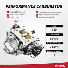The EVIL ENERGY 350 CFM 2-Barrel Carburetor is a cost-effective, precision-engineered replacement for the Holley 0-80350, offering dependable fuel performance, responsive throttle control, and smooth daily drivability—at a significantly lower price. Priced at just $399.99, it provides a smart, value-driven alternative to higher-priced competitors like Holley and Edelbrock.