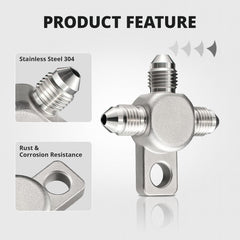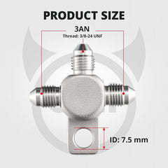 This EVIL ENERGY 3AN brake tee fitting is crafted from high-strength stainless steel and features a side mounting tab for easy chassis installation. Designed to split brake, clutch, or fuel lines in tight spaces, it handles high heat and pressure, making it ideal for performance vehicles, track builds, and street mods.