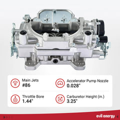The EVIL ENERGY is a seamless-upgrade 500 CFM square-bore carburetor engineered for classic automatic-transmission vehicles.its electric choke and mechanical secondaries deliver smooth power through #86/#95 jet calibration. Bolt this direct-fit solution onto your automatic-equipped classic—effortlessly revive your cruiser's drivability today!
