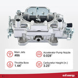 The EVIL ENERGY 500 CFM 4-Barrel Carburetor is a high-value alternative to the Edelbrock 1404, offering comparable performance at a significantly lower price. Designed for classic V8 engines ranging from 305 to 390 cubic inches, it provides reliable power delivery and smooth drivability for both restoration projects and performance builds.