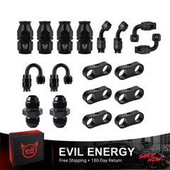 This AN fitting kit is built for high-pressure PTFE fuel and oil systems, delivering reliable, leak-proof connections for performance, racing, and street builds. CNC-machined 6061-T6 aluminum, swivel ends, and a 37° flare seal ensure strength, easy installation, and clean routing in tight engine bays. Rated up to 1500 PSI and compatible with E85, it’s ideal for fuel lines, oil coolers, transmission coolers, and turbo oil feed setups.