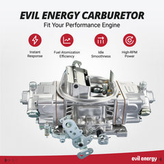 The EVIL ENERGY 850 CFM 4-Barrel Street Carburetor offers high-performance features at a more affordable price than major competitors like the Quick Fuel Brawler BR-67214.