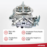Constructed from 100% new, high-strength alloy materials, the EVIL ENERGY Carburetor ensures reliability and temperature stability on track, not refurbished or remanufactured components. Performance matches the Quick Fuel BR-67201 racing carburetor, but the EVIL ENERGY 850 Carburetor offers the same airflow and horsepower capability at a more affordable price point—making it the smarter, high-value choice for performance builders.