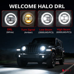 Nothing is more iconic than a Jeep flexing out on the trail. That's why we've fitted our 9" round LED headlights with custom textured Halo DRL's and dedicated turn signals, because an icon deserves legendary features.