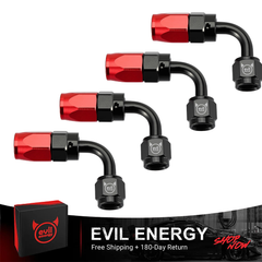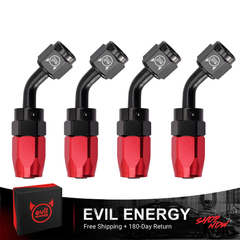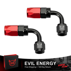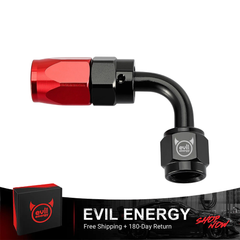 The EVIL ENERGY AN Hose End Fitting offers a high-performance, leak-free solution for fuel, oil, and transmission lines. Crafted from lightweight 6061-T6 aluminum and featuring a 360° swivel design, these fittings simplify routing in tight engine bays and custom setups. Compatible with stainless steel or nylon braided hoses, and built to withstand 1500 PSI, they're perfect for EFI conversions, LS swaps, and high-pressure fuel systems. Choose from straight, 45°, 90°, or 180° angles for maximum installation flexibility.