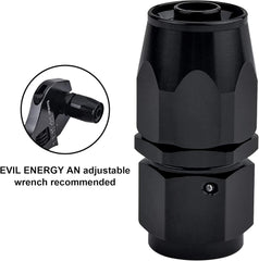 EVIL ENERGY AN swivel hose end kit includes 8 reusable fittings for high-pressure fuel, oil, or coolant lines. Made of black anodized 6061-T6 aluminum, each piece features a full swivel design for quick adjustment and clean routing. Compatible only with EVIL ENERGY braided CPE hoses, it's the perfect solution for LS swaps, EFI conversions, or turbo setups.
