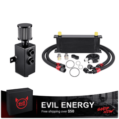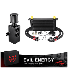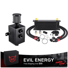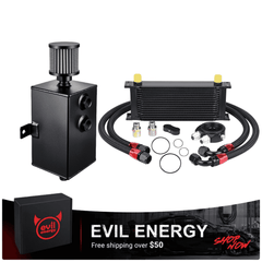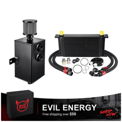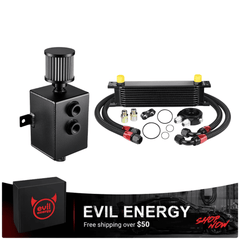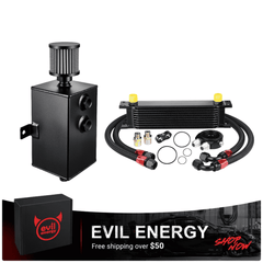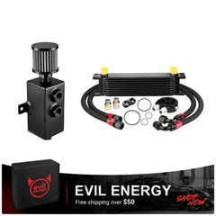 The EVIL ENERGY Combo Oil Catch Can Kit brings together a high-performance Oil Catch Can (without fuel line kit) and a Universal Stacked-Plate Engine Oil Cooler—delivering dual-engine protection to safeguard your vehicle's powertrain and elevate performance. This all-in-one solution addresses two critical engine health issues: the Oil Catch Can traps oil vapor to prevent carbon buildup, while the Engine Oil Cooler lowers oil temperatures to stop thermal breakdown. It's the perfect upgrade for daily drivers, performance builds, racing vehicles, and off-road setups.
