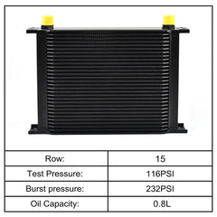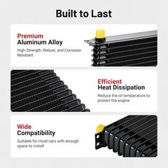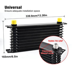The 340mm engine oil cooler (available in 10ROW/15ROW) features a precision-machined aluminum core that maximizes heat transfer, ensuring optimal oil temperature in all conditions.