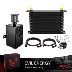 The EVIL ENERGY Combo Oil Catch Can Kit unites a high-performance 1L/2L/3L Oil Catch Can (Without Fuel Line Kit) and a 340mm Universal Stacked-Plate Engine Oil Cooler—delivering dual-engine protection to safeguard your powertrain and boost performance. This all-in-one solution tackles two critical engine health challenges: the oil catch can traps oil vapor to prevent carbon buildup, while the 340mm engine oil cooler lowers oil temperatures to stop thermal breakdown. The EVIL ENERGY Oil Catch Can Kit is the ideal upgrade for daily drivers, performance builds, racing vehicles, off-road setups, and specifically optimized for Cadillac, Chevrolet, GMC, Hummer, and Pontiac LS V8 engines (2007-2015).