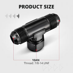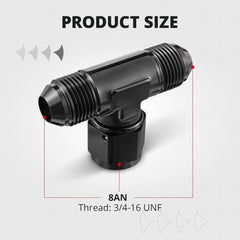 EVIL ENERGY tee adapters connect AN8 or AN10 male threads with a female swivel port on the side, offering flexibility in fuel and oil line routing. CNC-machined from 6061-T6 aluminum and rated for 1500 PSI, they’re ideal for EFI builds, LS swaps, and carb setups where space and flow direction matter.