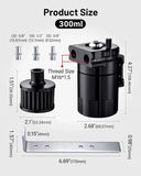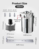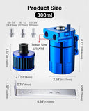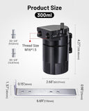 Durable & Space-Saving Build: Crafted from high-grade aluminum to withstand engine bay heat (up to 200°C) and vibrations—no deformation or leakage. The 300ml capacity balances practical oil storage (fewer emptying trips) and compact dimensions (fits tight engine bays, even in small cars).