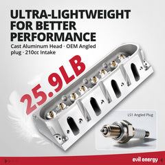 Upgrade your engine's breathing capabilities with EVIL ENERGY LS heads. Engineered specifically for the iconic GM LS1 platform, these LS1 heads feature a cast aluminum construction and precision-machined cathedral ports. Designed to optimize airflow efficiency, they significantly enhance torque and horsepower in the mid-to-high RPM range, making them the ideal choice for street performance and track builds.