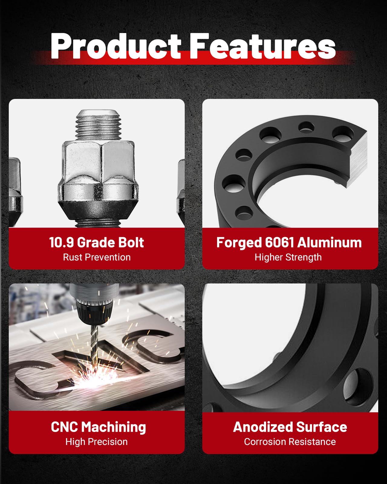 ● Improved Clearance and Appearance:The 2 inch thickness pushes wheels outward for better clearance with brakes and suspension. Helps correct offset issues and gives your truck a wider more aggressive stance.