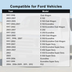 • [FITMENT 2]: Compatible with E-350 Econoline Club Wagon 5.4L 7.3L V8 6.8 V10 1997-2002; E-350 Super Duty 5.4L 7.3L V8 6.8 V10 1999-2007; E-450 Econoline Super Duty 5.4L 7.3L V8 6.8 V10 2000-2002; E-450 Super Duty 5.4L 7.3L V8 6.8 V10 2003-2007; E-550 Econoline Super Duty 6.8L V10 2002; E-550 Super Duty 7.3L V8 6.8L V10 2003; Econoline 4.6L 5.4L V8 1999-2006; Econoline Super Duty 5.4L 7.3L V8 6.8 V10 1997-1999; F53 6.8L V10 2004, 2006-2009, 2011, 2012