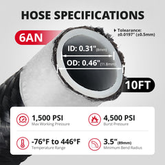 This all-in-one 6AN PTFE fuel line kit includes everything needed for a professional-grade installation: