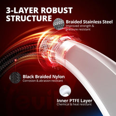 Whether on the track or the street, the 6AN PTFE Fuel Line is engineered for extreme conditions. With a 304 stainless steel braid and PTFE core, it is the ideal EFI system solution, capable of handling up to 1,500 PSI and corrosive fuels.