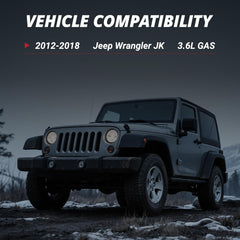 A: It’s compatible with 2012-2018 Jeep Wrangler JK models with 3.6L GAS engines. Please confirm your vehicle’s year and engine size before purchase.