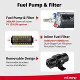 Crafted from lightweight yet strong aluminum, our aluminum fuel cells are engineered to resist corrosion and withstand the demands of high-performance applications. The EVIL ENERGY fuel cell ensures stable fuel delivery and reduces vapor lock, making it ideal for both EFI and carbureted systems.