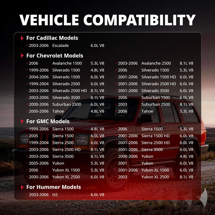 | Silverado 1500 HD | 2001-2006 | 6.0L V8 |