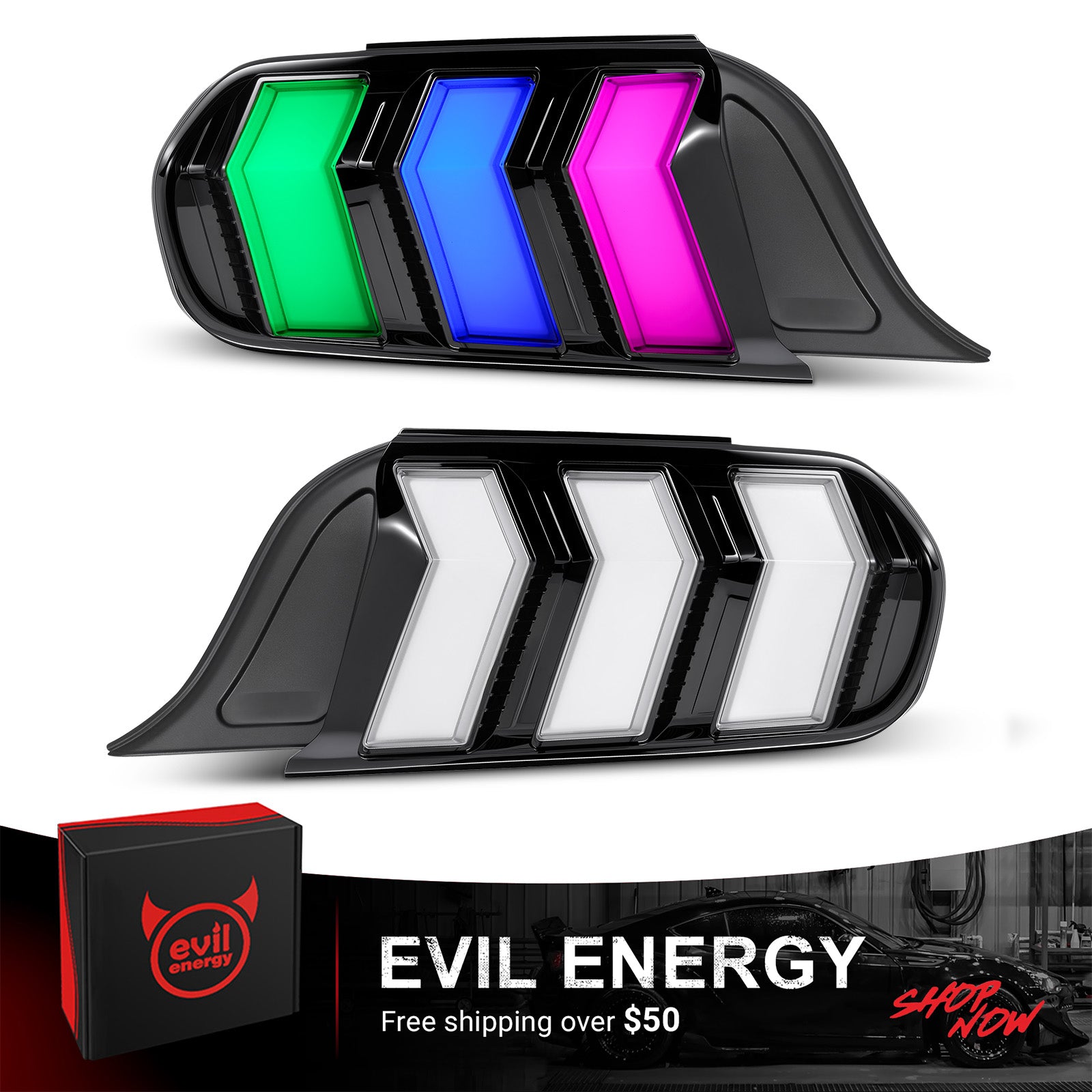 Easy DIY installation with full compatibility. No modifications or splicing needed! These Mustang tail lights are designed for direct factory replacement. Simply remove your old tail lights and connect EVIL ENERGY lights using the included harness. (Installation guide is included in product package).