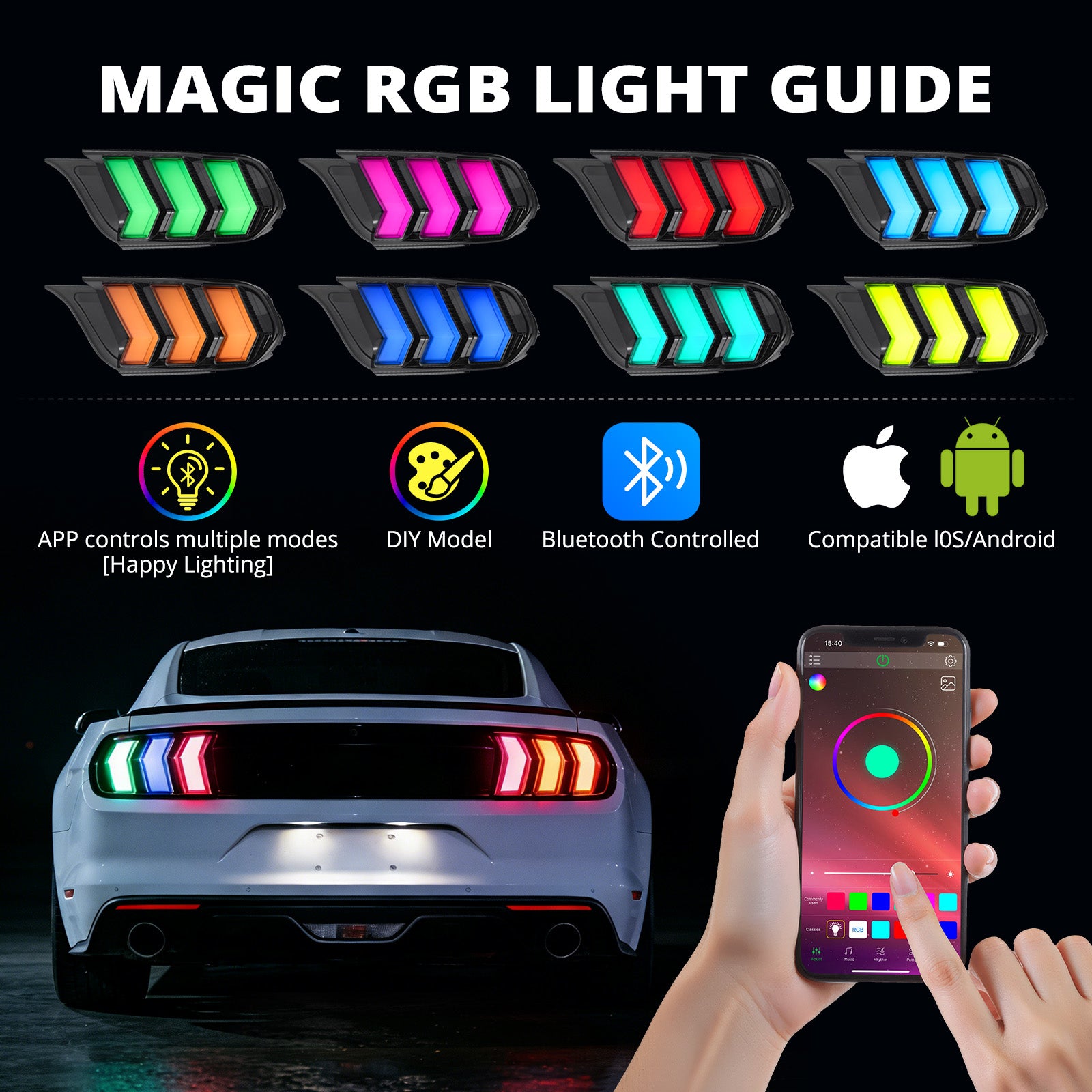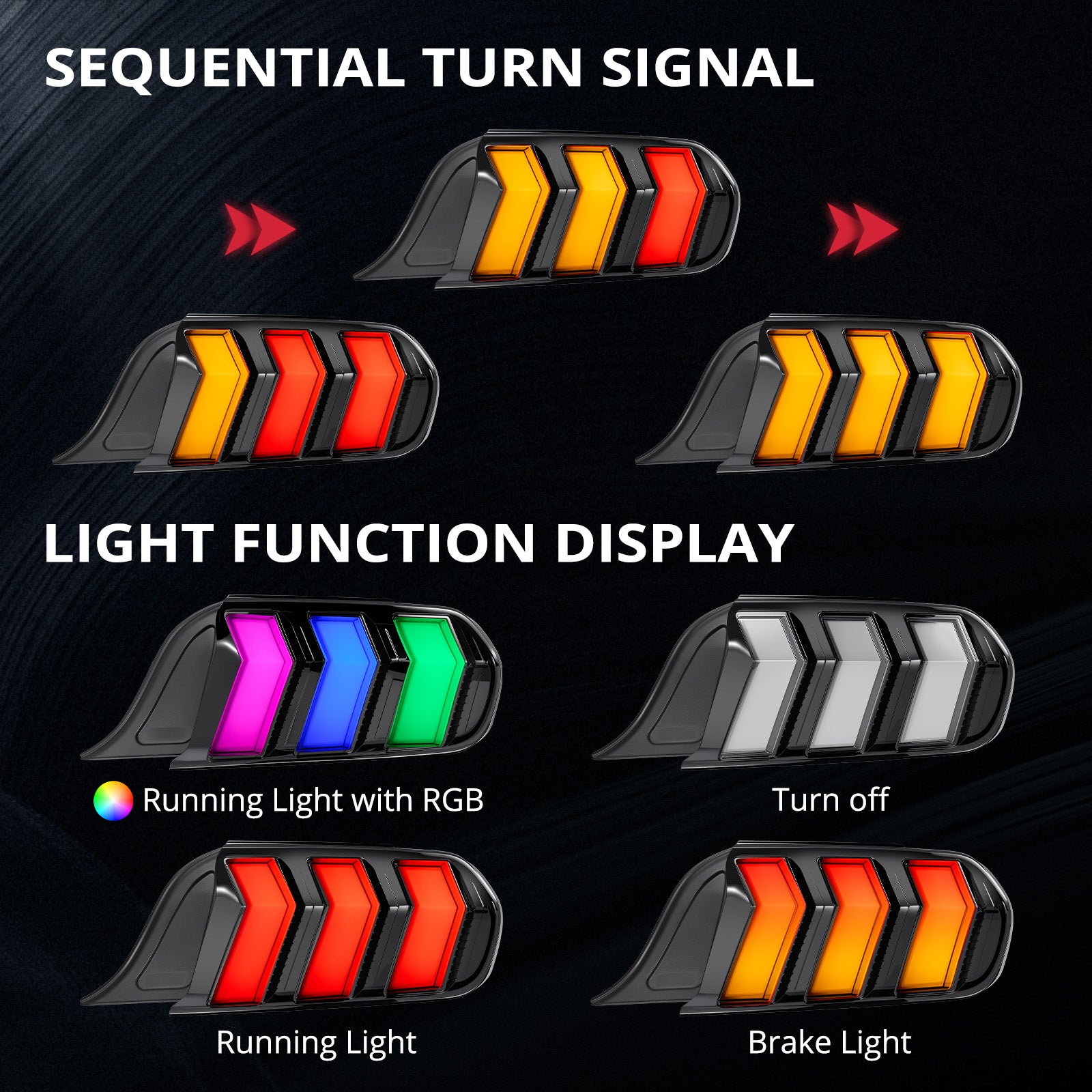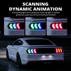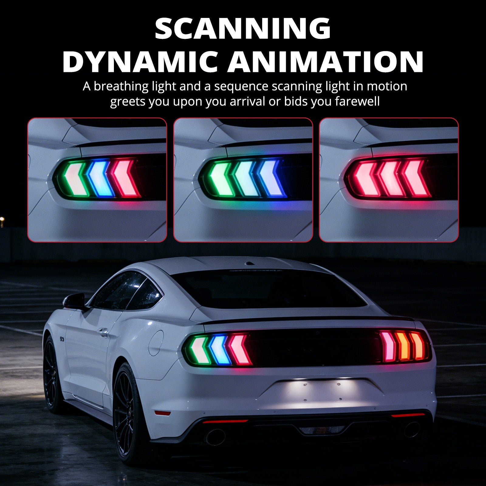 3D flowing RGB sequential effect each time when start the car. Animated DRLs ensure your Mustang is visible to other drivers from diferent directions on the road. lt looks more cool and shiny as a great modified and upgraded replacement for the stock taillights.