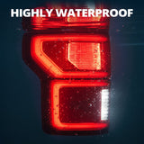 Tail Light Assembly Compatible with 2018 2019 2020 Ford F150, OE Replacement, Perfect Fitting Brake/Stop Light, no gaps, no modifications, and no hassle Enhance Vehicle New Look with Red Lens Color. The advanced optical design 1000% brighter than the original headlights delivers brighter, more even illumination for enhanced visibility and a premium look.