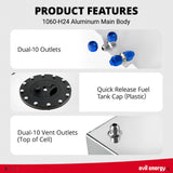 - 2.5 to 15 gallon fuel cells – Include a 3–90 ohm fuel level sensor and anti-slosh foam.
