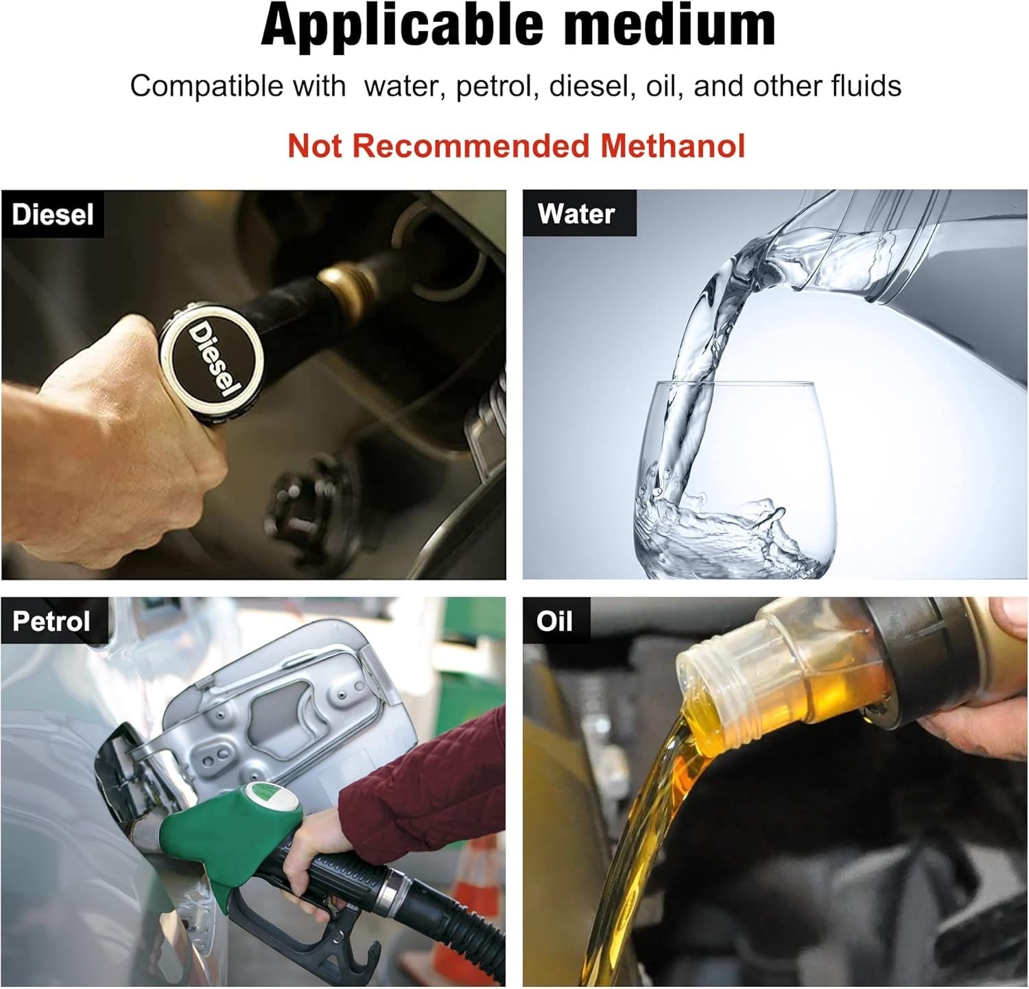 | Media Compatibility | Gasoline, Diesel, Oil, Air, Water (Not for Methanol) |