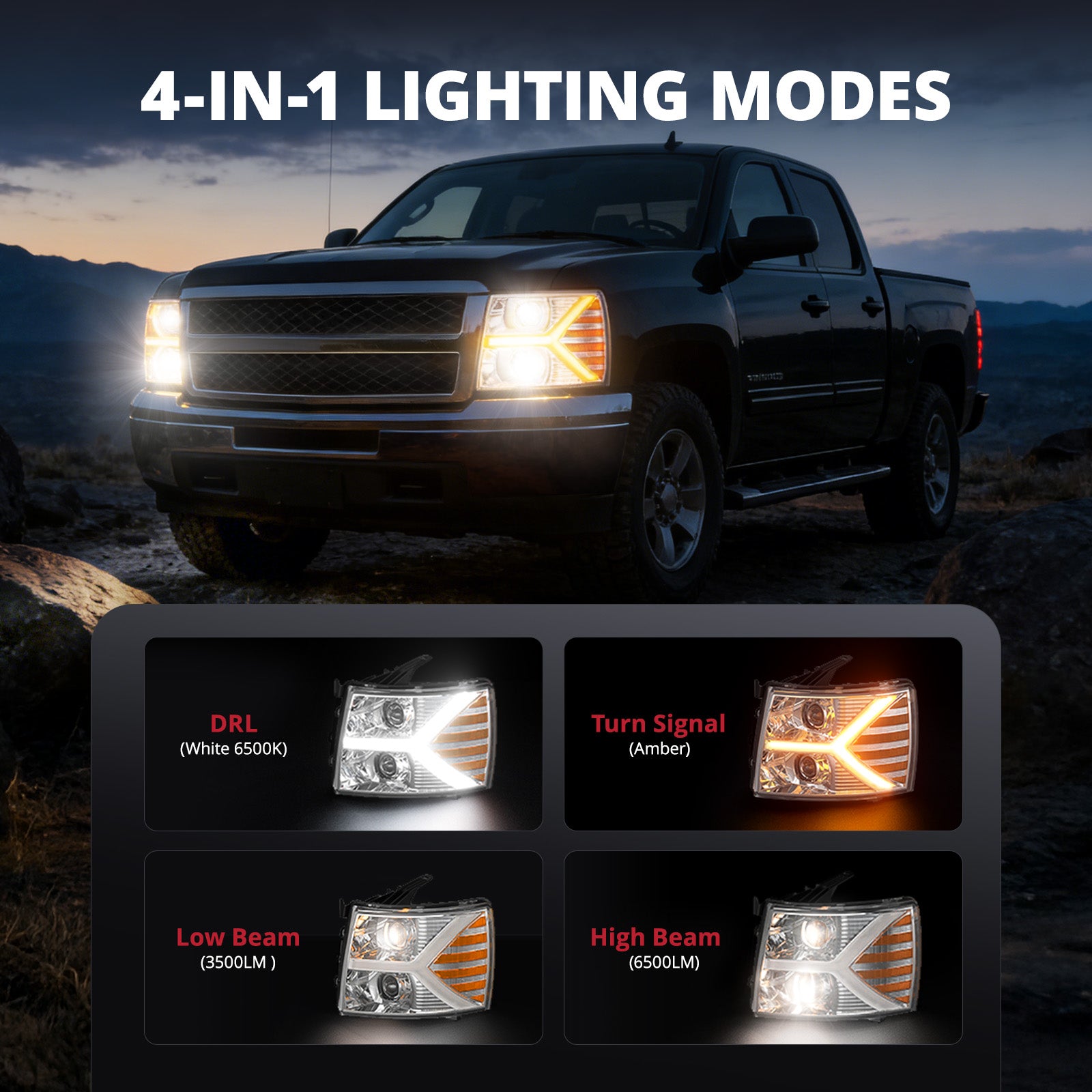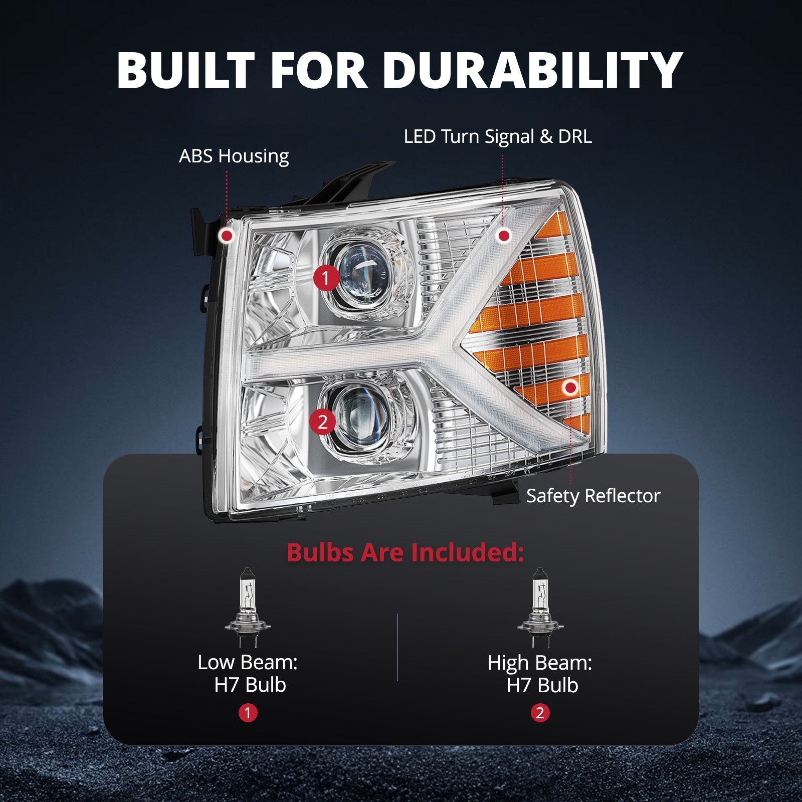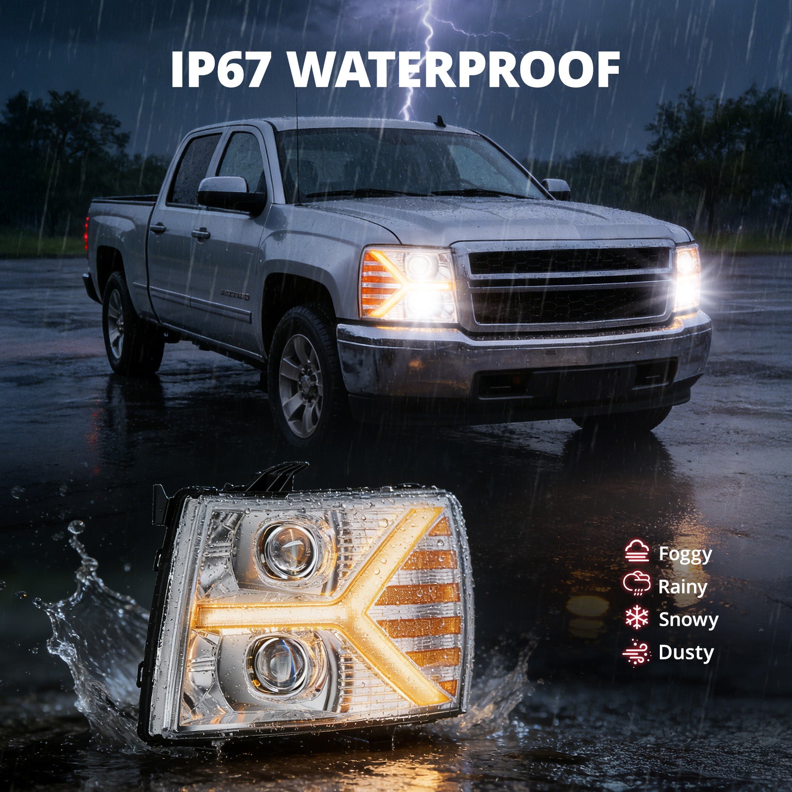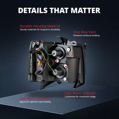 Built with impact-resistant ABS and sealed with premium silicone, the head light assembly set offers reliable IP67 waterproof protection against rain, snow, and dust. Plus, its dual one-way vents prevent condensation, keeping lenses clear and fog-free in all conditions.