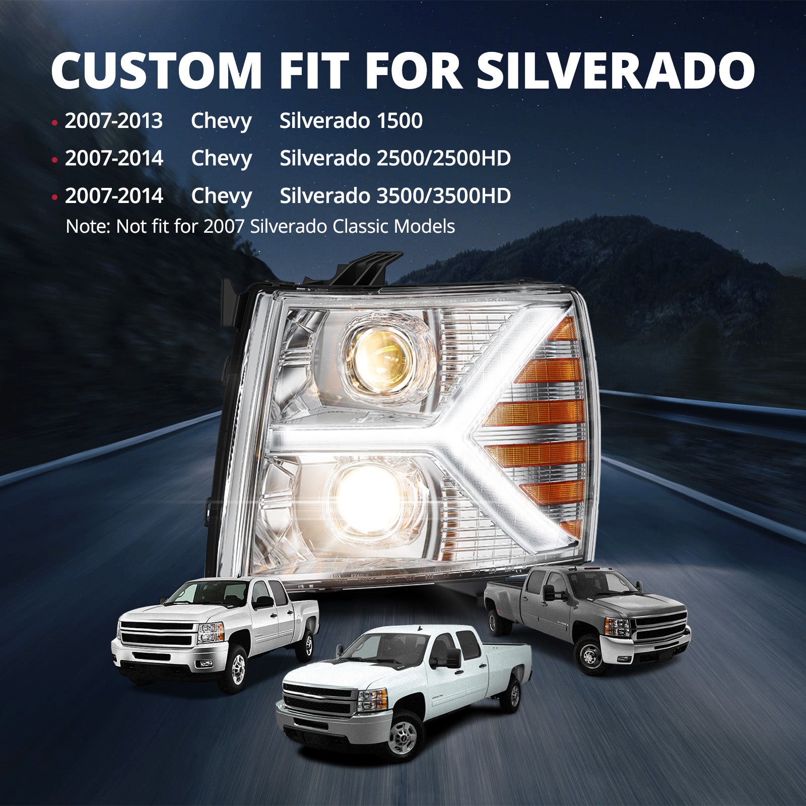 Please Note: This headlight assembly pair is not compatible with the 2007 Silverado Classic.