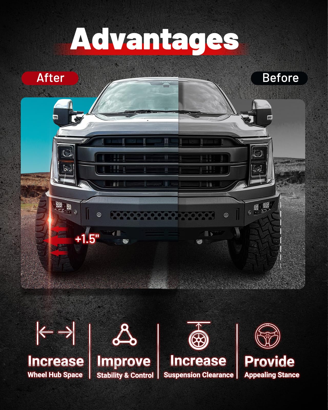 Whether you're tackling rugged roads or cruising on highways, these 1.5" or 2" spacers ensure your wheels run smoother with better balance — no wobble, no vibration.