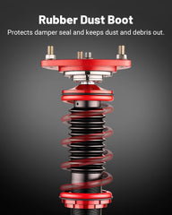【2 - 4 inches Height Adjustable】-The coil suspension kit reduces the chassis height of the car, allowing you to have a more aggressive stance, which helps eliminate turning noise and improve steering feel and response, enhancing its handling, stability and performance.