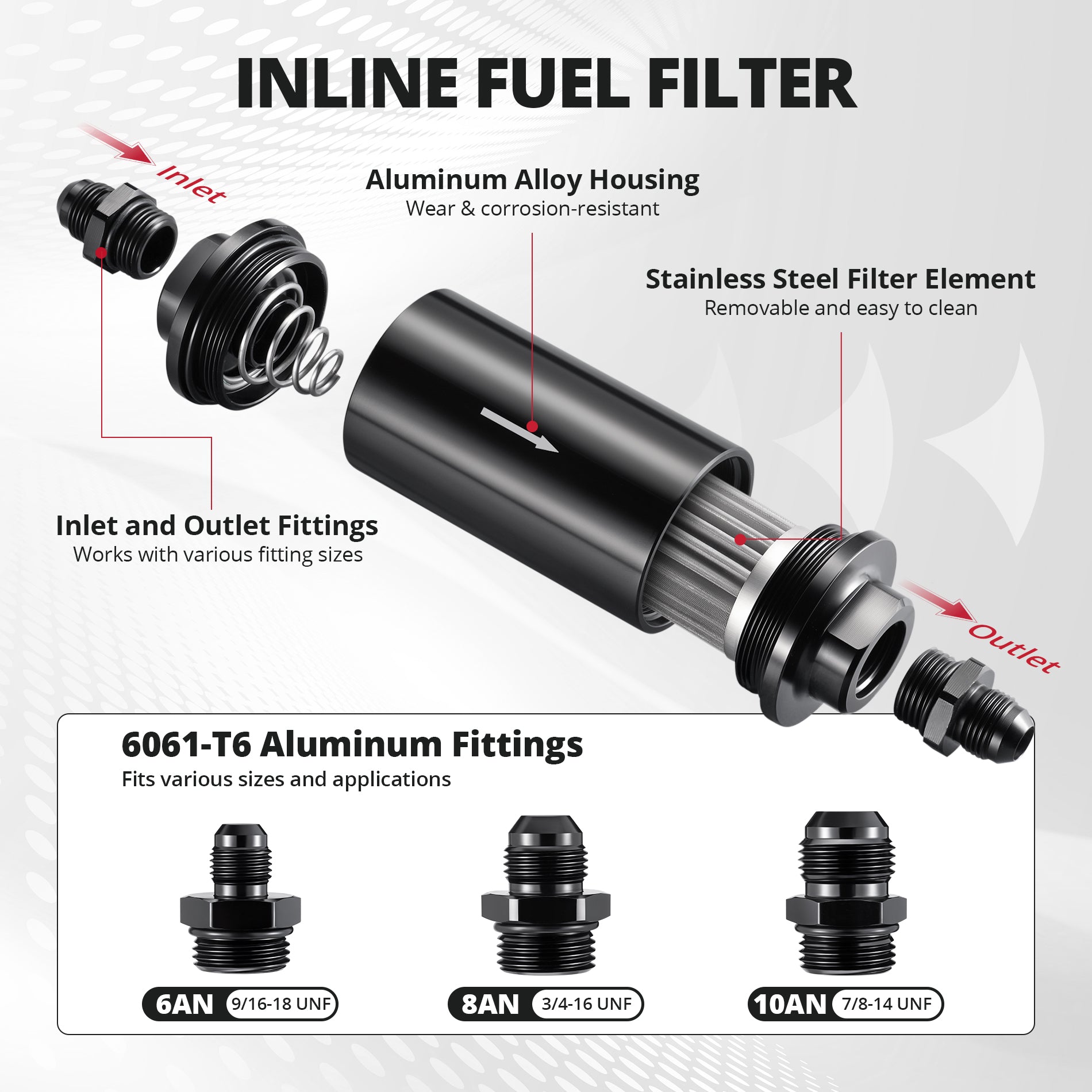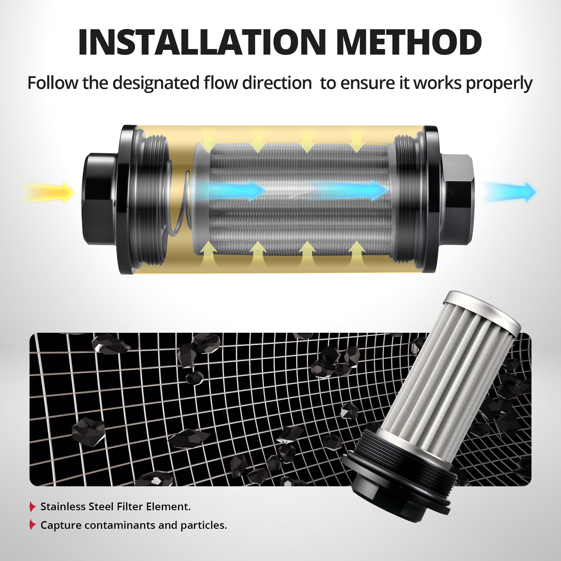 - Universal Fuel Line Integration: Offering specialized options like the 3/8 inline fuel filter and 5/16 inline fuel filter, it fits seamlessly into the fuel lines of most passenger cars, trucks, and pickups.