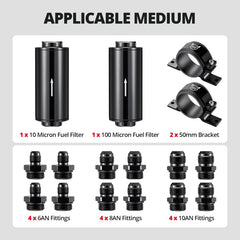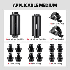 - Carbureted & EFI Systems: This car fuel filter is highly compatible with both classic carburetor setups and modern Electronic Fuel Injection (EFI) systems. It is available in various filtration ratings—including 10, 30, 40, and 100 microns—to meet specific precision requirements.