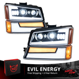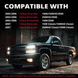 EVIL ENERGY LED headlight assemblies are compatible with 03-06 Chevy Silverado 1500, 1500 HD, 2500, 2500 HD, 3500; 07 Silverado 1500 Classic, 1500 HD Classic, 2500 HD Classic, 3500 Classic; 03-06 Chevy Avalanche 1500, 2500 (NOT FIT FOR Factory Body Cladding MODELS).
