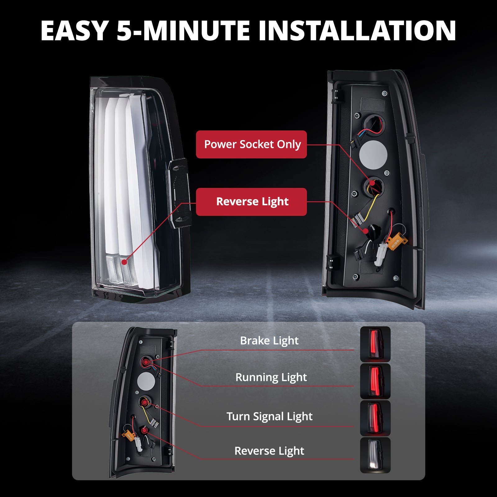 The classic white tail lights directly connect to your factory wiring harness—no splicing or drilling needed. The fully integrated LED design eliminates the need for stock bulbs. Just follow the included instructions and complete the installation in minutes.