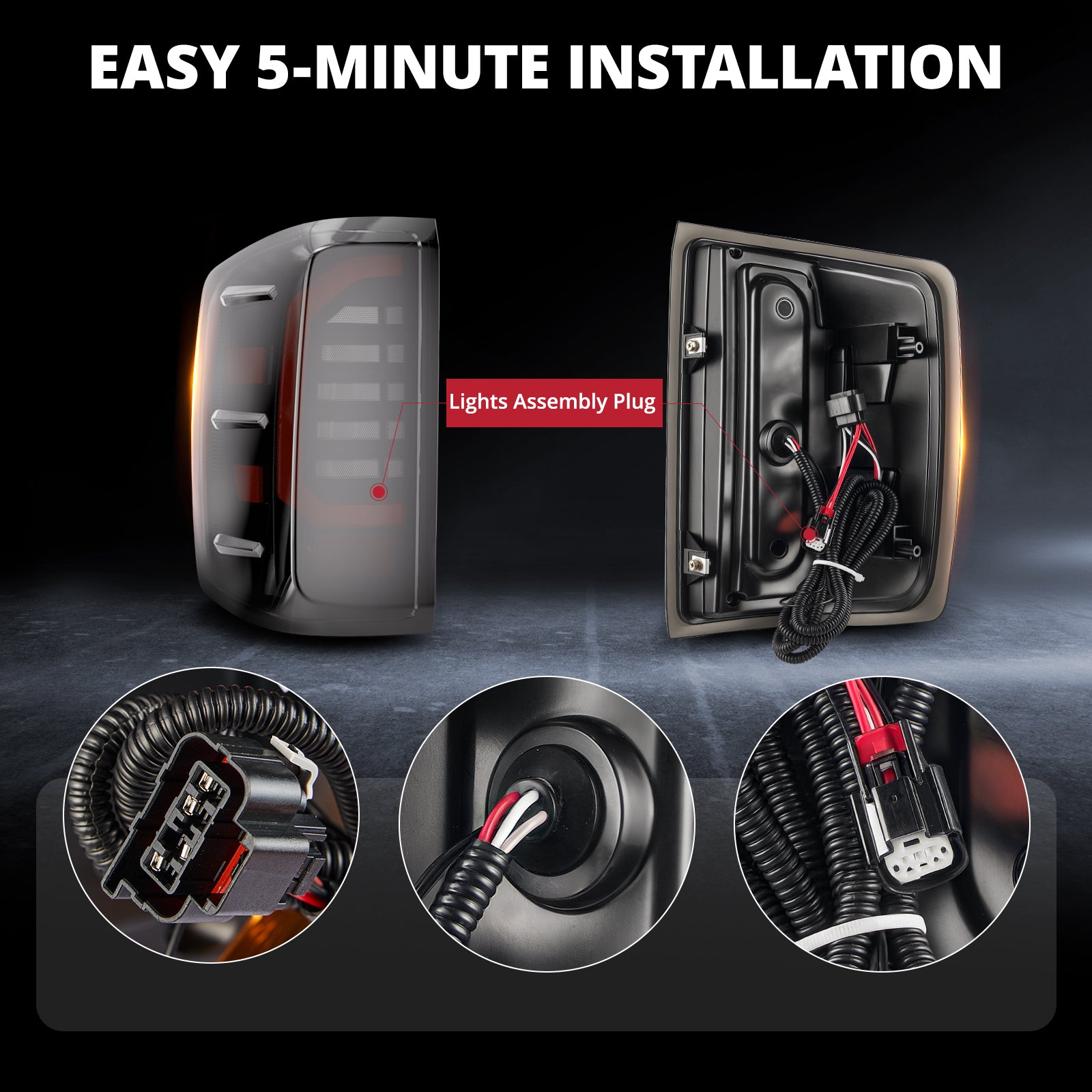 The smoked tail lights directly connect to your factory wiring harness—no splicing or drilling needed. The fully integrated LED design eliminates the need for stock bulbs. Just follow the included instructions and complete the installation in minutes.