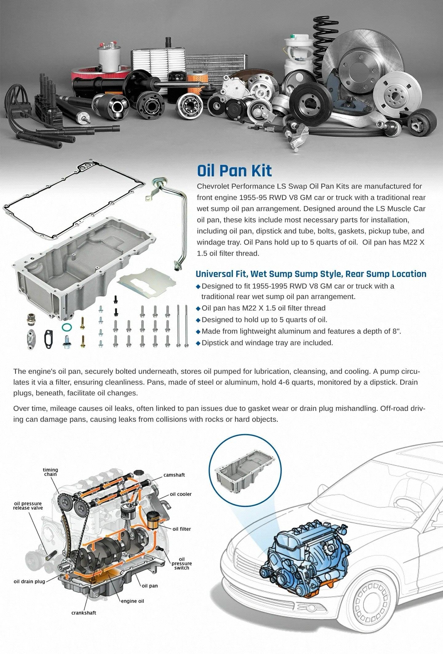 Composed of lightweight cast aluminum, EVIL ENERGY's low-profile, retro-fit oil pan is designed to allow for increased clearance to the ground and chassis. It will fit many GM rear-wheel drive applications originally equipped with a small or big block Chevy engine and factory rear sump pan.
