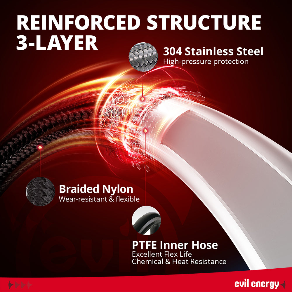 - Antistatic PTFE Fuel Hose: Anti-static, corrosion-resistant, compatible with gasoline, alcohol, E85 and other fuels, flexible and durable.