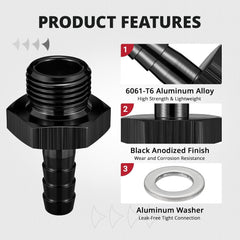 This metric male to hose barb fitting is designed for reliable fuel and oil system connections where factory metric ports meet rubber hose setups. CNC-machined from 6061-T6 aluminum, it offers excellent strength and corrosion resistance while remaining lightweight. The included aluminum washer helps create a secure seal, making it a dependable solution for fuel pumps, regulators, oil coolers, and custom automotive plumbing.
