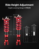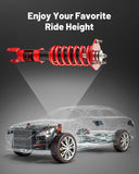 【2 - 4 inches Height Adjustable】- The coil suspension kit reduces the chassis height of the car, allowing you to have a more aggressive stance, which helps eliminate turning noise and improve steering feel and response, enhancing its handling, stability and performance.
