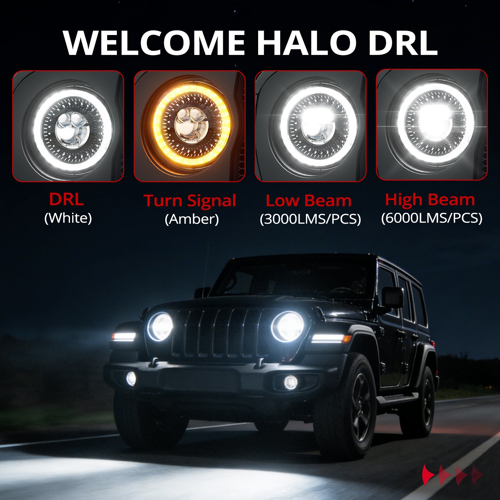 NOTE: Drop in replacement for #6024,6014,H6024,H6014 and all vehicles with 7 inch round headlights. (perfect replacement for Wrangler JL Halogen original headlights.)
