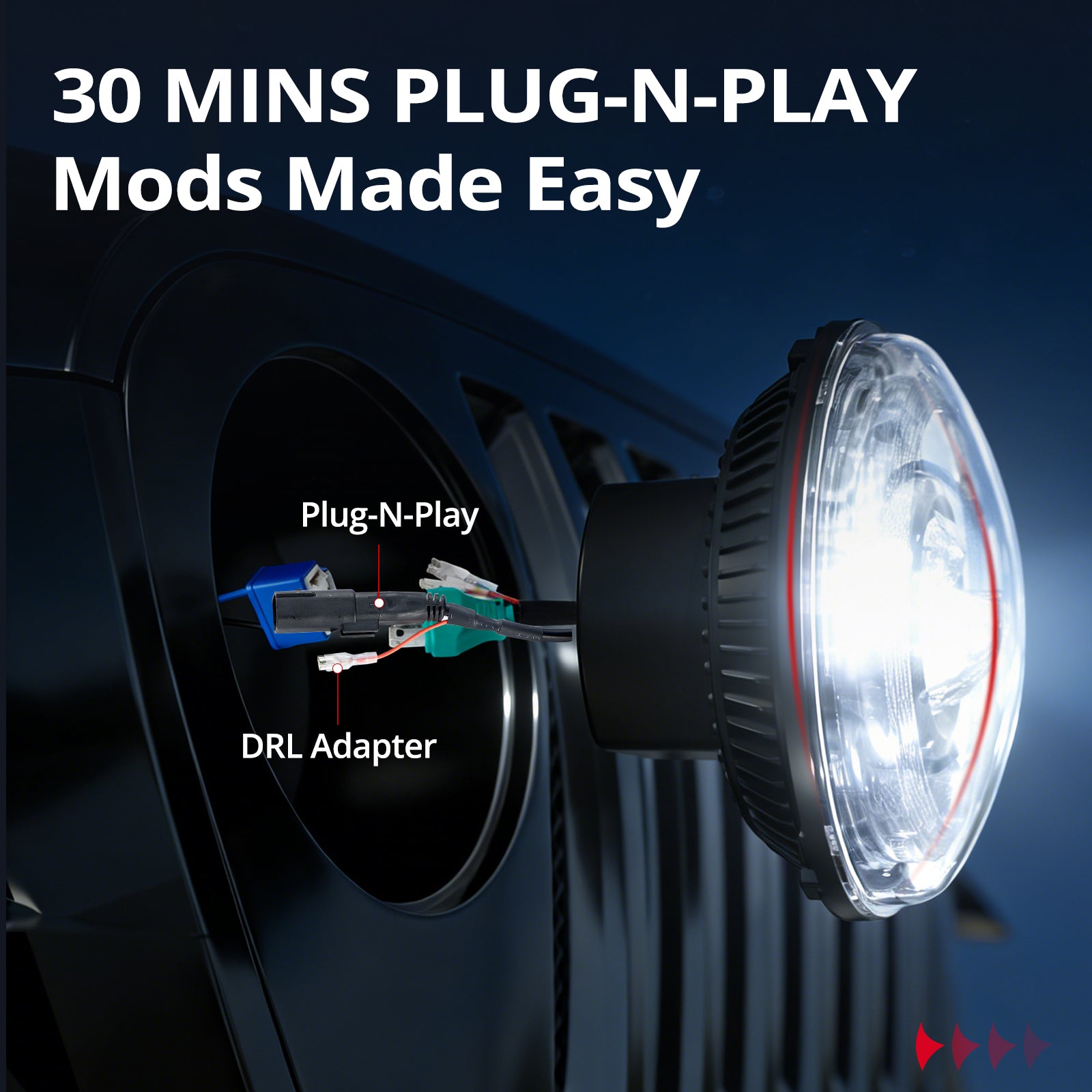 Plug&Play. Compatible with most vehicles with 7 inch led headlights(some need to do some modification),replacement for #6014, 6015, 6016, H6024 and Par 56 headlamps.
