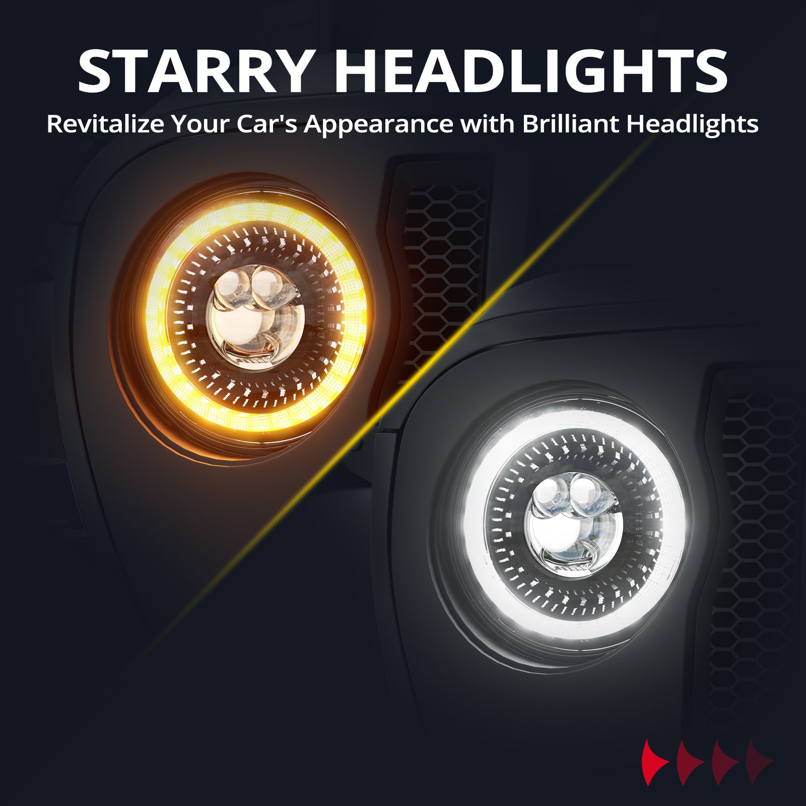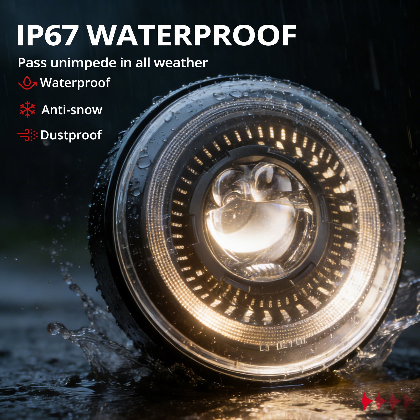| Special Features | Start-up Gradient Welcome Starry Halo, White DRL, Amber Blinkers, High Brightness, Wide and Long Vision, Anti-Glare, True DOT SAE Approved(include DOT Complete CODE), Heavy Duty, Impact resistance, Long Lifespan, IP67 Waterproof, Dustproof, Shockproof |