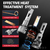 P2 Series H4/9003/HB2 LED bulbs use U-shaped copper tube and thickened copper plate for heat control, regulate temperature during prolonged use, ensuring consistent performance without overheating, reducing the risk of light decay or failure. P2 series incorporates High-Speed fan with 15,000 RPM speed, All-In-oneAluminum Material and a built-in finned heat sink for superior cooling. This advanced heat management system ensures the high power H4/9003/HB2 LED bulbs remain stable even during extended use.